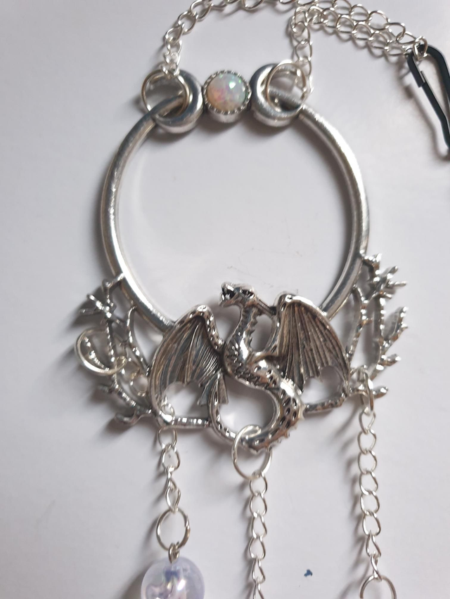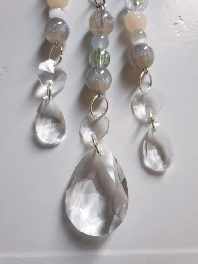 Dragon topped grey beaded 3 strand suncatcher
