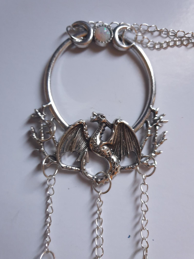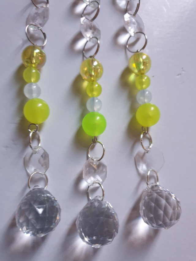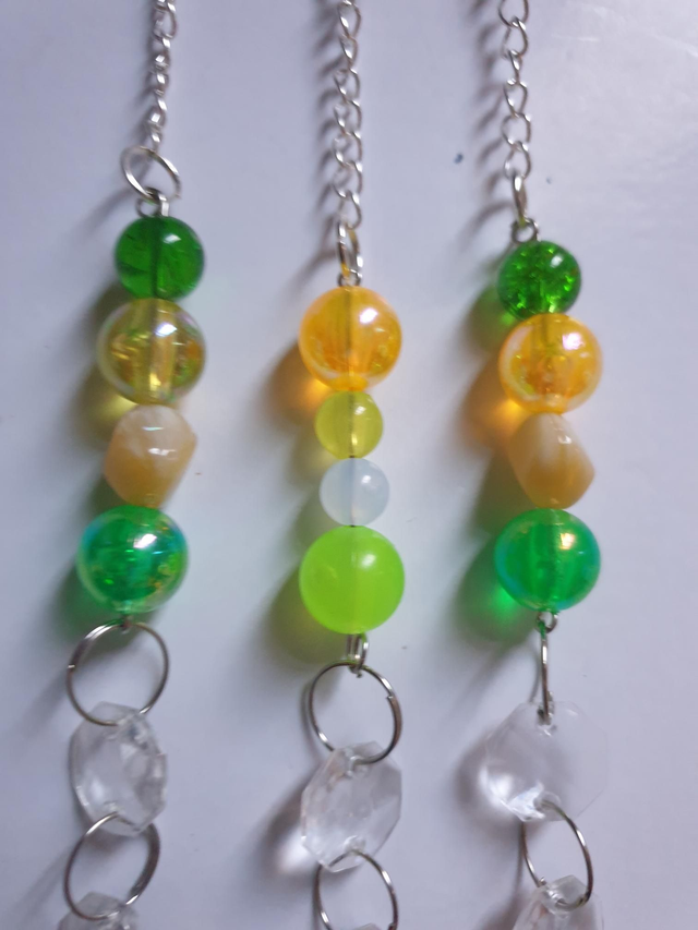 Dragon topped suncatcher with 3 strands yellow and green beads
