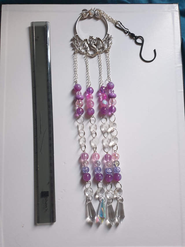 Dragon topped suncatcher with 4 strands pink beads