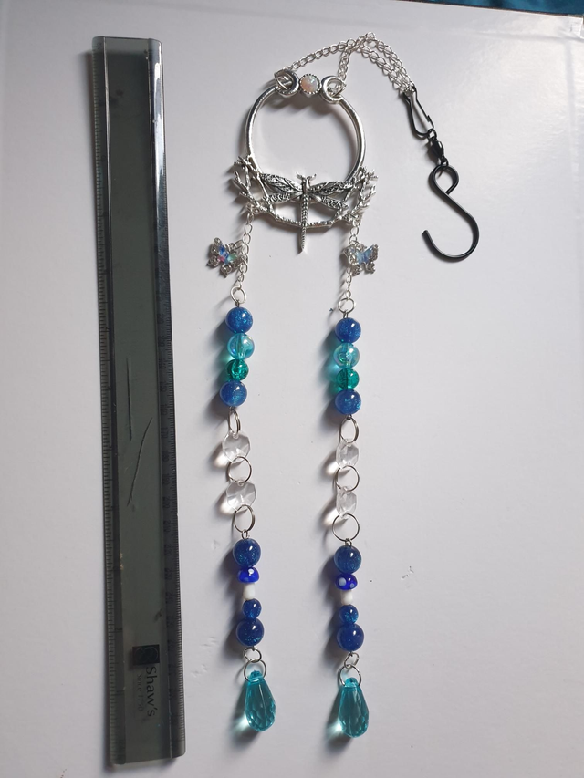 Suncatcher - Dragonfly 2 Strand Blue with Butterfly charms.