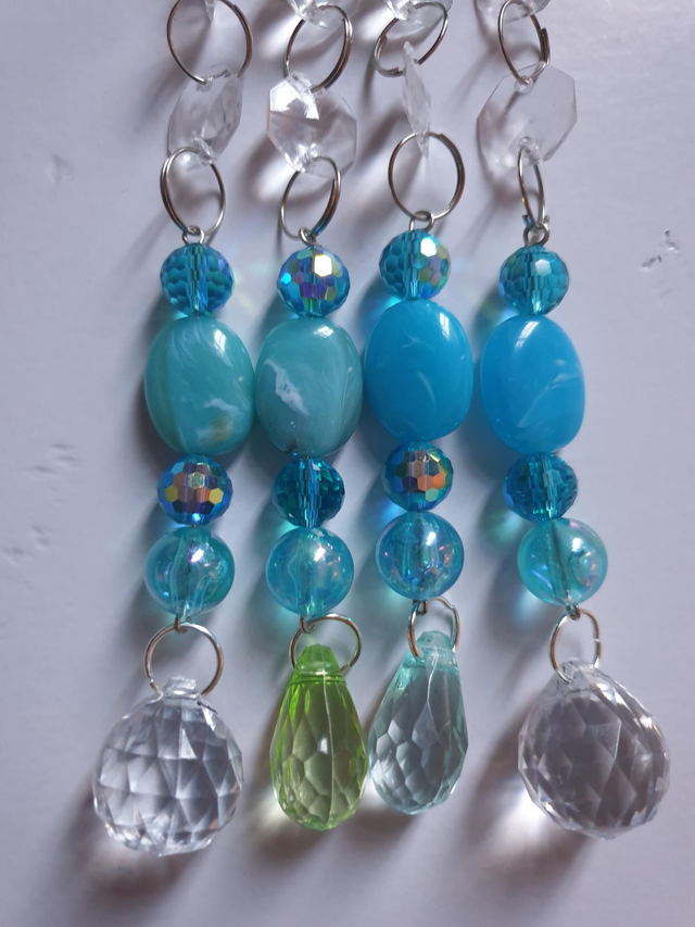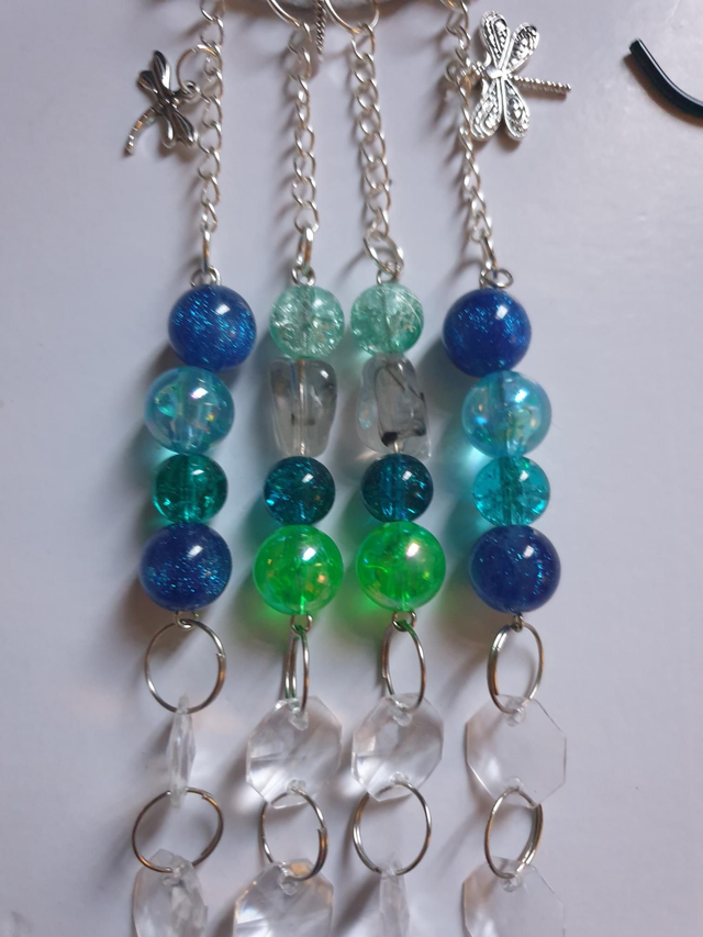 Suncatcher - Dragonfly 4 Strand Blue Green Beads with charms