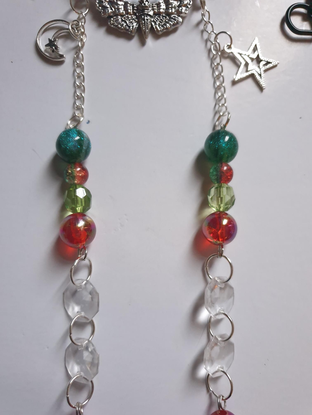 Suncatcher - Moth 2 Strand Christmas colours Moon Star Charms